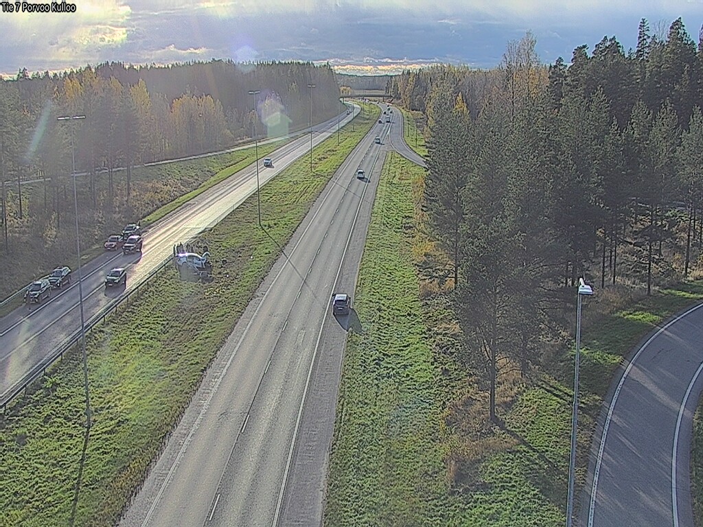 FINTRAFFIC Auto ajoi ulos Porvoonväylältä ja päin kaidetta.